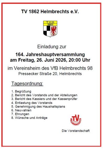 TVH-Jahreshauptversammlung am 26. Juni 2026