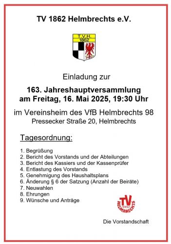 Ob als Trainer, Funktionär oder Betreuer, ob hinter den Kulissen, bei Veranstaltungen oder durch finanzielle Hilfe – ihr alle habt dazu beigetragen, dass der TVH auch das zurückliegende Jahr erfolgreich bestehen konnte.